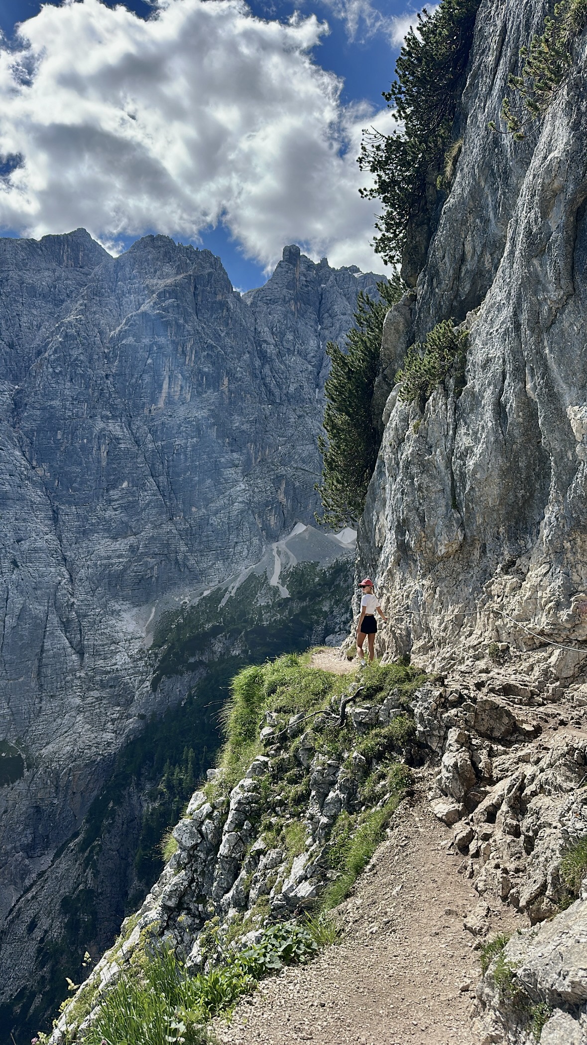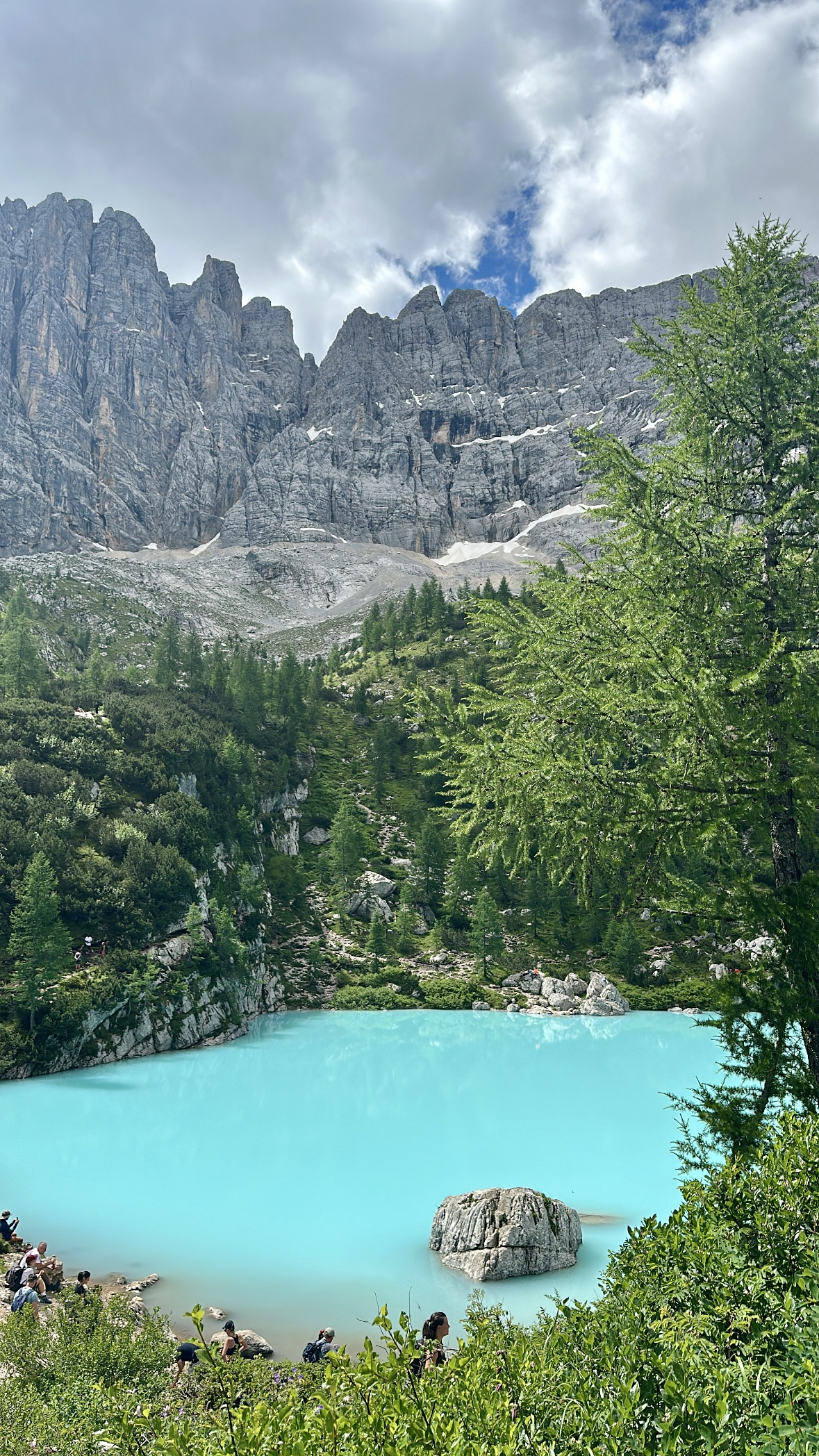Die Wanderung zum Lago di Sorapis zählt zu den bekanntesten Touren in den Dolomiten und steht bei vielen ganz oben auf der Liste. Der Weg ist wunderschön und führt durch abwechslungsreiche Landschaft, stellenweise sogar spektakulär an steilen Felsklippen entlang. Für uns war die Wanderung selbst sogar beeindruckender als der See am Ende. Wie du dir aber sicher denken kannst, ist die Tour extrem beliebt und daher fast immer überfüllt, was den Genuss zwischendurch etwas trüben kann.