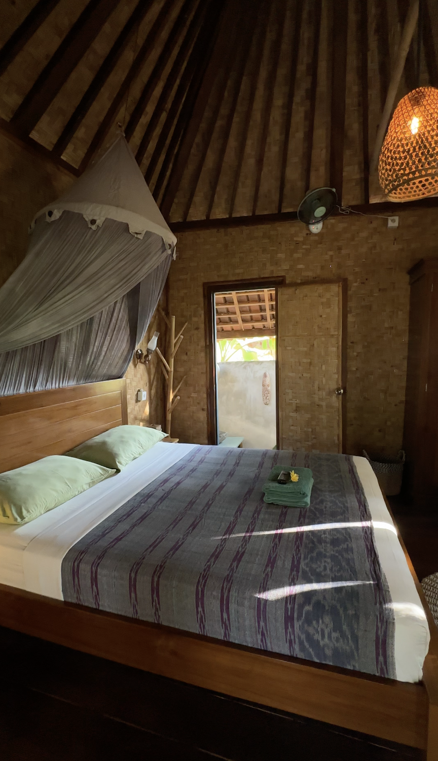 Auf Nusa Penida haben wir in der Unterkunft von Nengah übernachtet, die mit 15 € pro Nacht und Person inklusive Frühstück wirklich sehr preiswert ist. Ingesamt gibt es 3 Bungalows, die mitten im Dschungel liegen. Nengah ist unglaublich herzlich. Er hat uns eine eigene Schnorcheltour angeboten und den Kontakt zu einem Rollerverleih vermittelt, mit dem wir die komplette Insel erkundet haben.