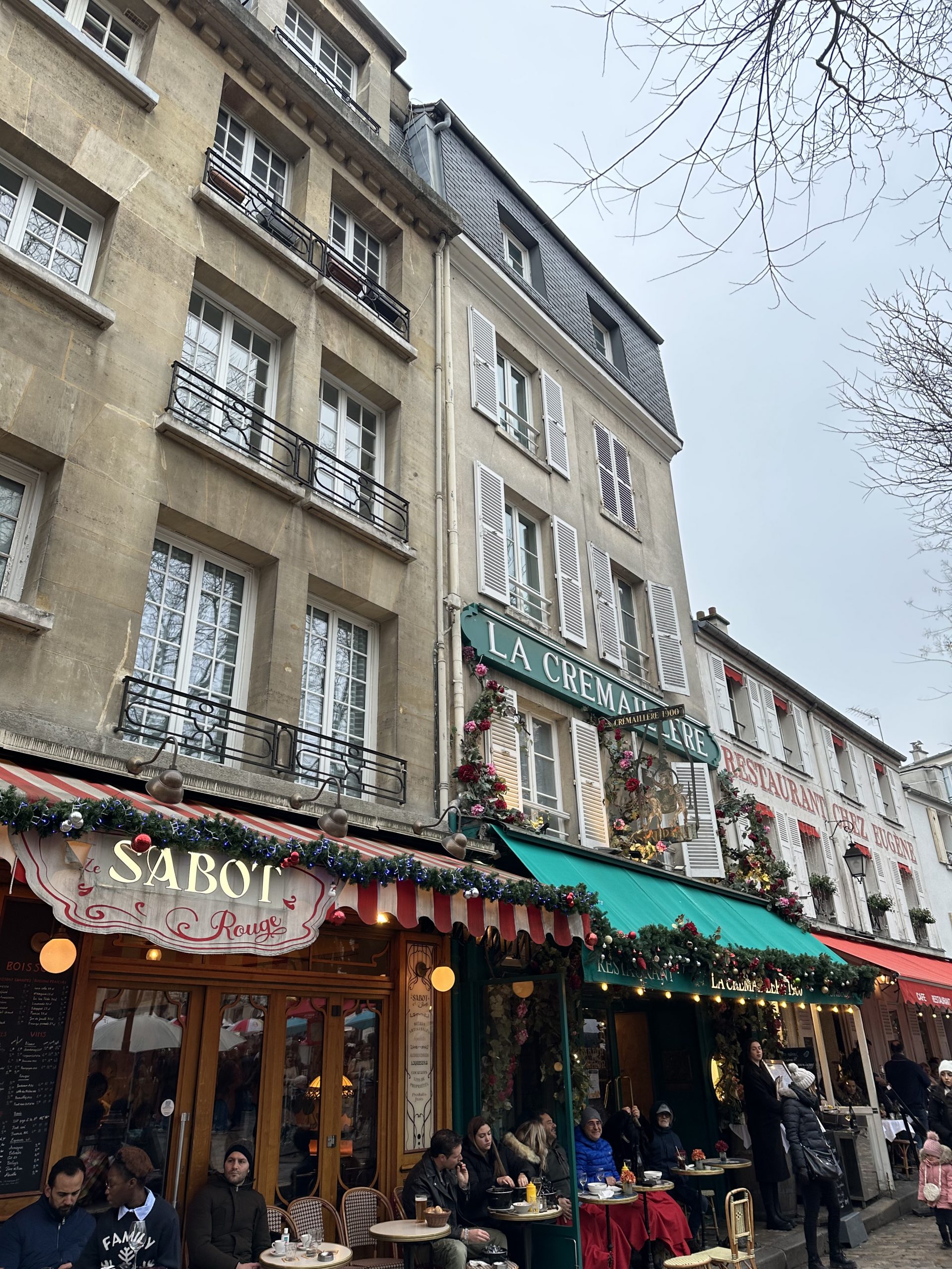 Unser zweiter Tag startete mit einem Frühstück bei Cafet’o. Dort gab es authentisches, preiswertes, kolumbianisches Frühstück in einer urigen Atmosphäre bevor es weiter Richtung Galeries Lafayette, einem der bekanntesten Einkaufszentren in Paris, ging. Die gesamte Straße, in der sich die Galeries Lafayette befindet, ist voller Einkaufsläden. Die Galeries Lafayette ist in der Weihnachtszeit festlich geschmückt, aber auch sehr voll. Bevor es weiter Richtung Montmartre ging legten wir für ein Mittagessen einen Stopp bei Gajin Ramen ein. Dieses Restaurant ist ein von außen sehr unscheinbar und kaum zu entdecken, aber ein echtes hidden gem für alle Ramenliebhaber. Hier empfehlen wir dir auf jeden Fall eine Reservierung, wenn du Wartezeiten vermeiden willst – ohne ist ein Platz nicht immer garantiert.
