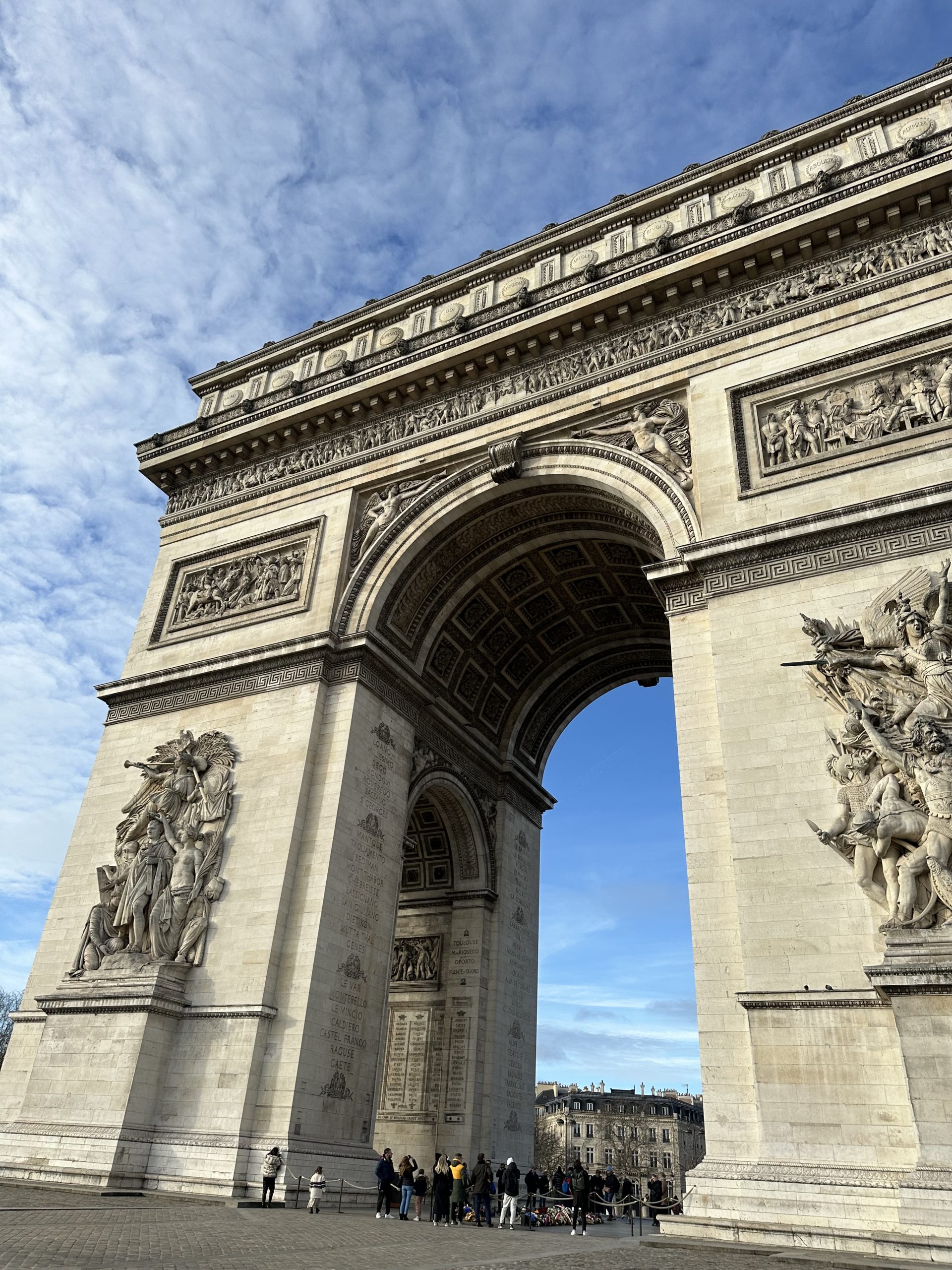 Unser letzter Tag startete mit Kaffee im Café Onoul und leckerem Gebäck von der Konditorei Panade. Danach ging es für uns Richtung Dupleix Stadtviertel, wo wir zufällig auf den Marché Grenelle gestoßen sind. Der Wochenmarkt hat mittwochs von 07:00-13:30 Uhr und sonntags von 07:00-14:30 geöffnet und bietet vielerlei Obst- und Gemüsestände aber auch herzhafte Essenstände mit frittierten Gerichten, Paella, halbem Hähnchen und mehr – eine Art kleiner Streetfood Market und perfekt für einen Mittagssnack. Nach der Stärkung ging es mit der Bahn Richtung Arc de Triomphe, einem der bekanntesten und ältesten Wahrzeichen von Paris.