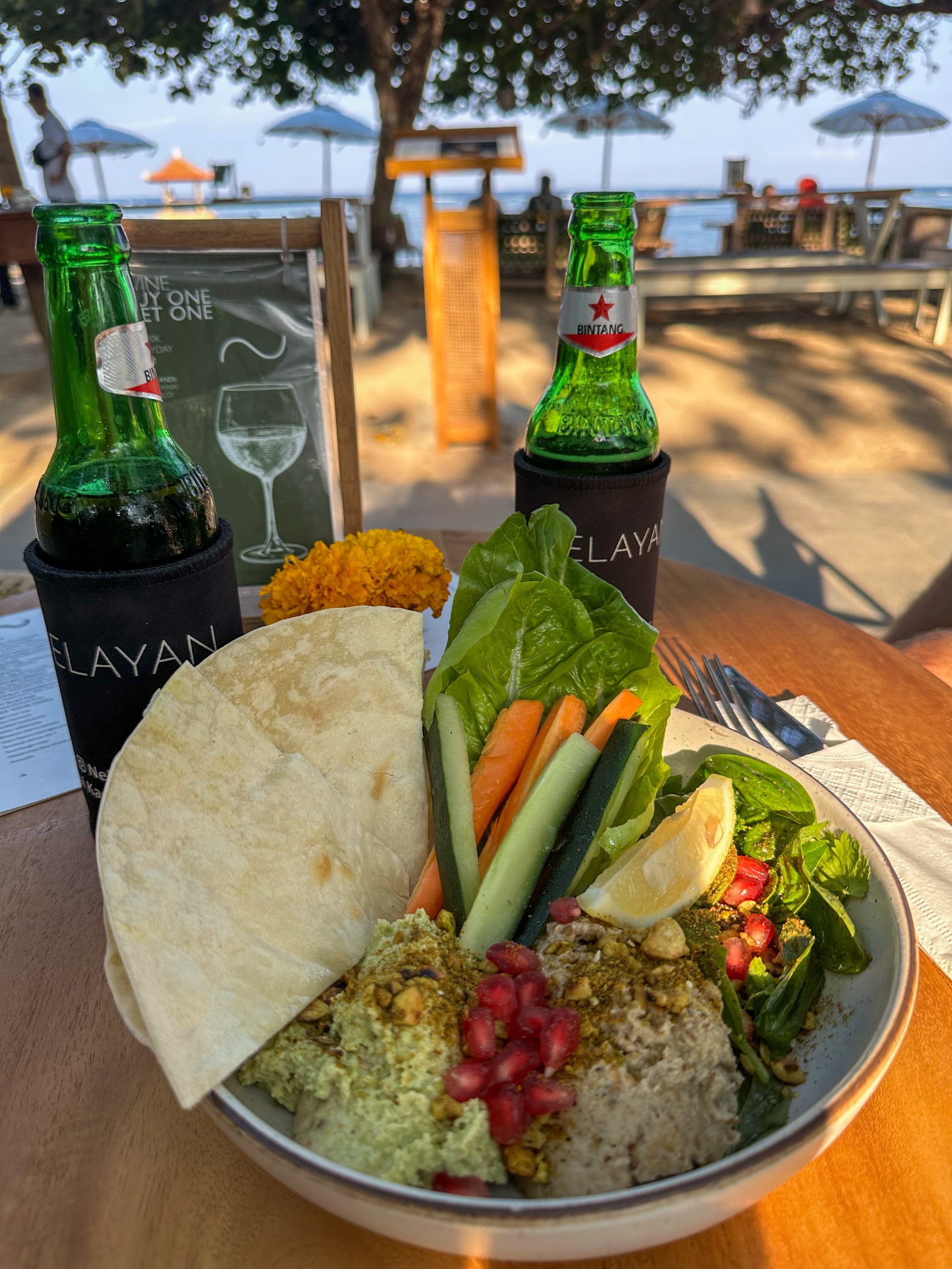 In der kurzen Zeit haben wir nur zwei Restaurants besucht, die wir dir aber wärmstens empfehlen können. Das Nelayan liegt direkt am Strand und bietet eine gute Auswahl an indonesischem Essen, Pasta und Cocktails. Wenn du ein leckeres und sehr günstiges Frühstück suchst, ist das Café Akaya perfekt. Dort gibt es viele verschiedene Frühstücksgerichte wie Bagels für etwa 3 Euro oder Bowls für rund 2,80 Euro.