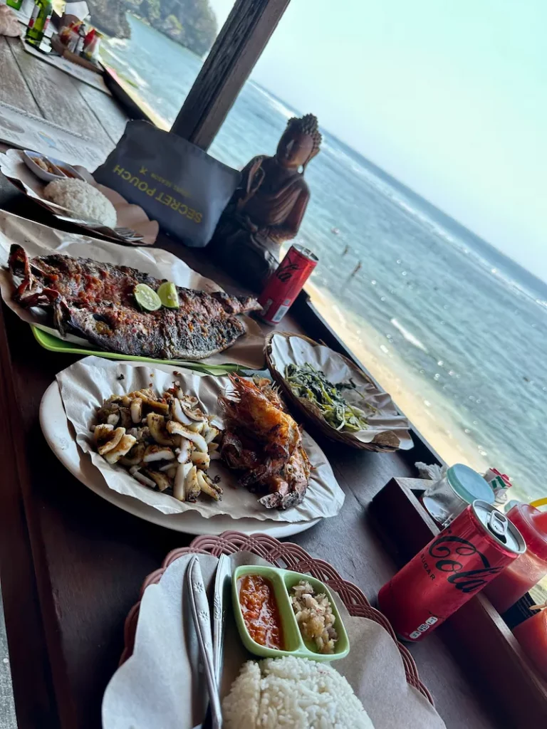 Wenn du auch dort übernachten willst, empfehlen wir dir ebenfalls ein Zimmer mit Meerblick zu nehmen. Die anderen Zimmer haben diese Aussicht nicht und liegen direkt neben dem Restaurantbereich, sodass jeder durchlaufen kann. Zudem solltest du beachten, dass das Hotel in die Klippe gebaut ist und einige Treppenstufen nach unten führen, was in der Hitze und mit schwerem Gepäck ziemlich herausfordernd sein kann. Was uns etwas gestört hat war, dass die Zimmer sehr hellhörig sind. Wenn du mit deinem Nachbarn also genauso viel Glück hast wie wir, klingelt sein Wecker um 5 Uhr morgens ohne, dass er ihn hört, du aber schon.