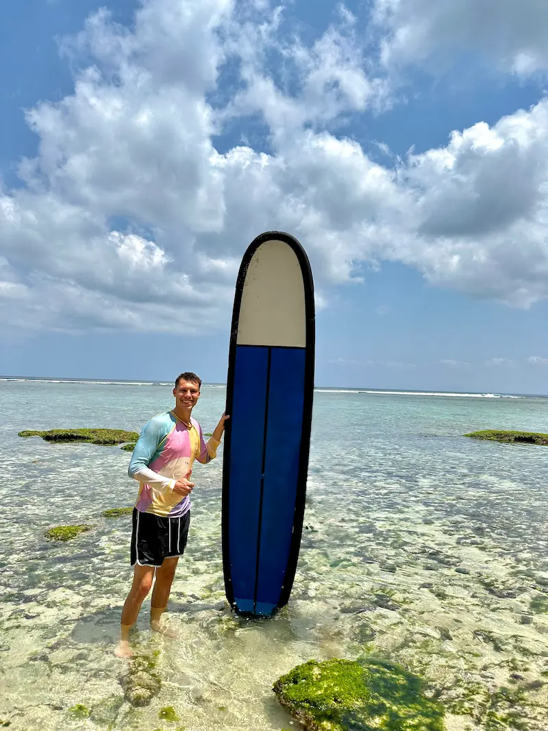 Unsere zweite Unterkunft war das Dreamsea Uluwatu. Das Hotel ist bekannt für Surf Camps an vielen Orten der Welt und liegt in Uluwatu direkt an der Klippe vom Padang Padang Beach. Es ist sehr beliebt und daher oft schon weit im Voraus ausgebucht. Die Unterkunft überzeugt mit einem ästhetischen balinesischen Stil, gutem Service und leckerem Essen, ist aber im Vergleich mit ca. 46 € pro Person und Nacht auch etwas teurer als andere Unterkünfte auf Bali. Im Preis ist allerdings auch schon das Frühstück enthalten. Wir haben eine Suite mit Meerblick gebucht und waren sehr zufrieden. Außerdem bietet das Hotel Surfkurse an, die du auch unabhängig von einer Übernachtung buchen kannst. Der Preis hierfür liegt bei ungefähr 40 € pro Person..