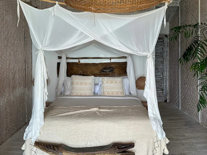 Our second stay was at Dreamsea Uluwatu. The hotel is well-known for its surf camps around the world and is located right on the cliff of Padang Padang Beach. It is very popular and therefore often fully booked out far in advance. The place impresses with its aesthetic Balinese style, great service, and delicious food, though it is a bit more expensive than other Bali stays at around 46 € per person per night. However, breakfast is already included in the price. We booked a sea-view suite and were very satisfied, as it was right at Padang Padang Beach. Also there were plenty of activities available, such as surf lessons or yoga.